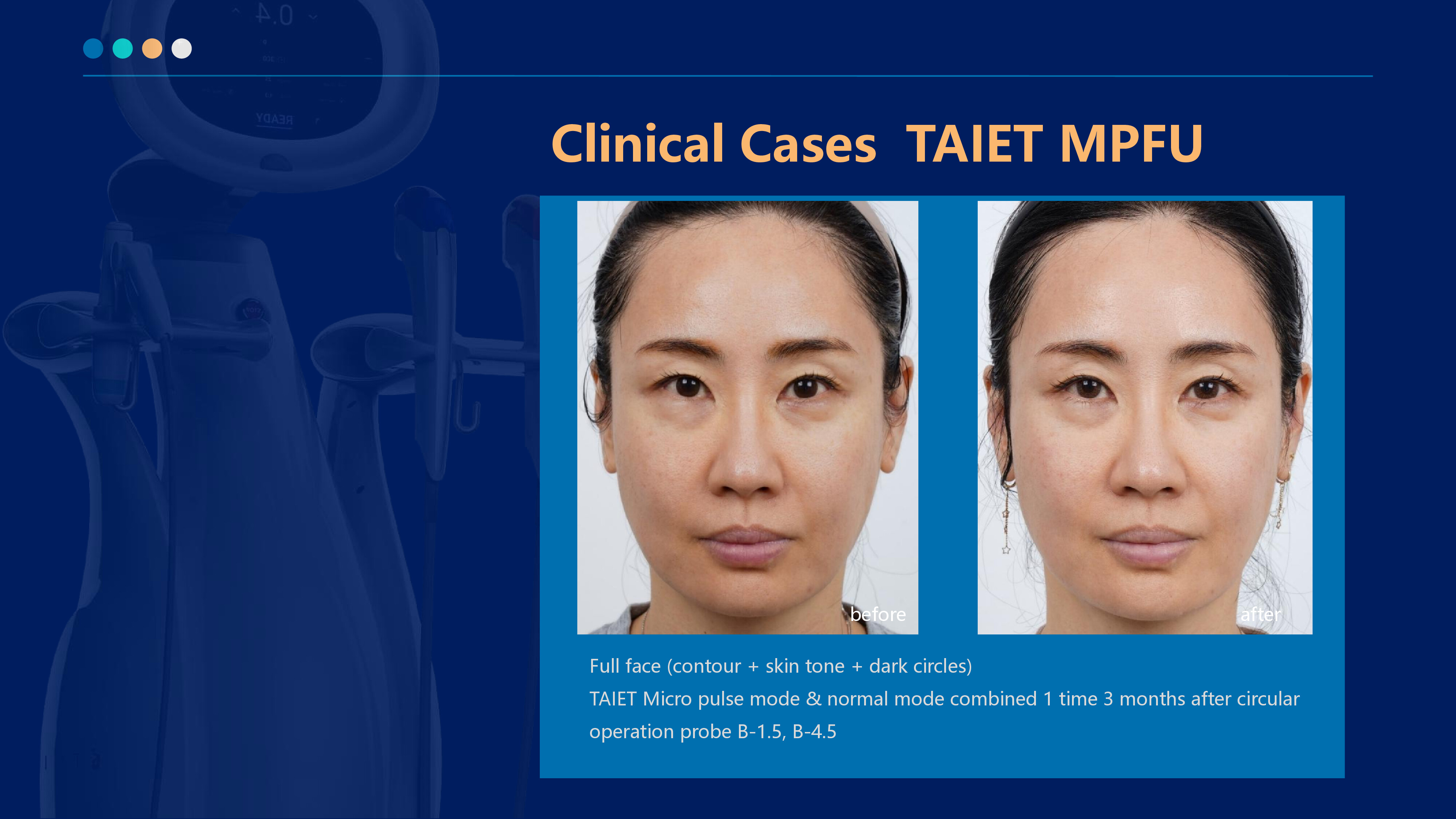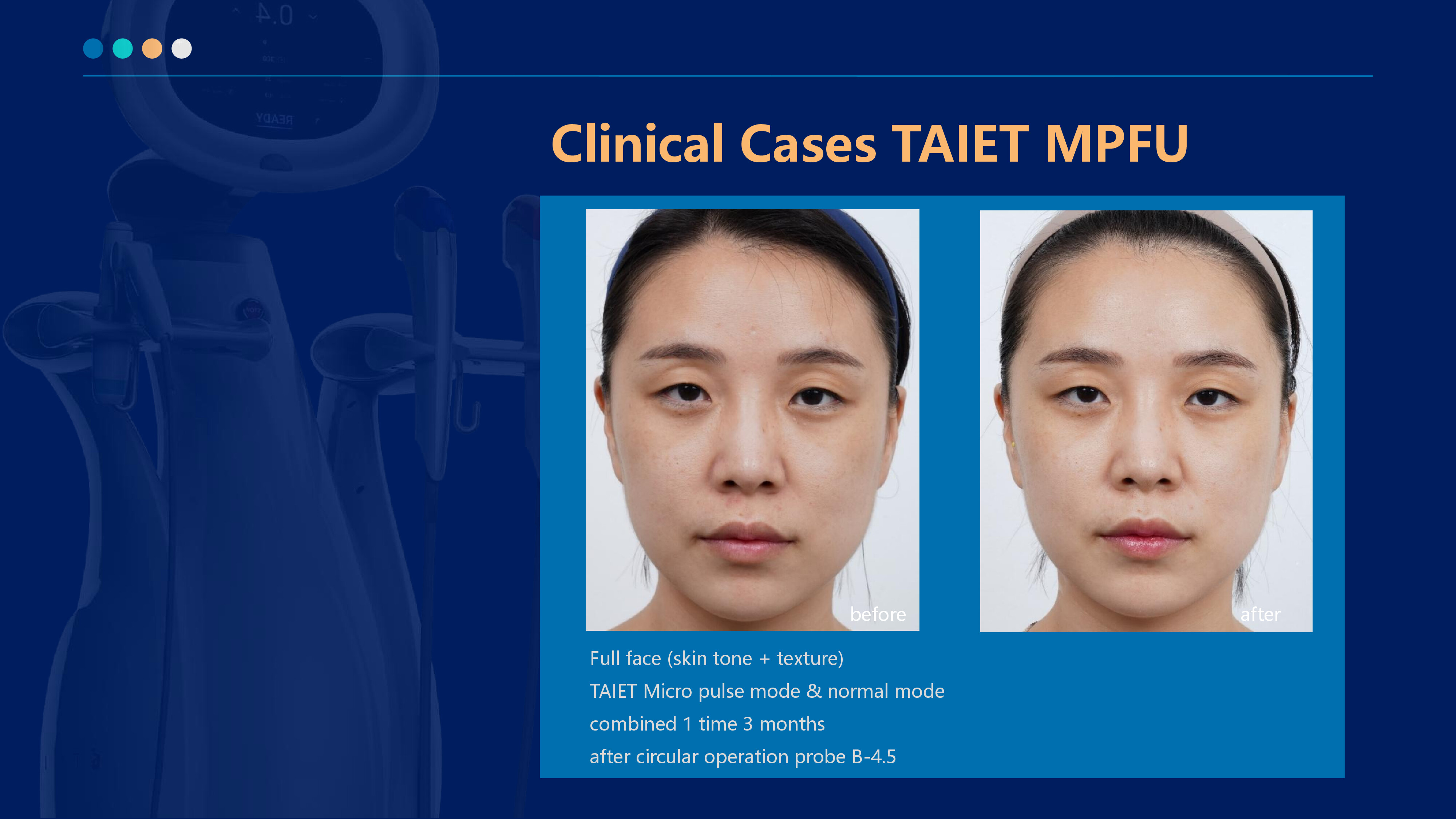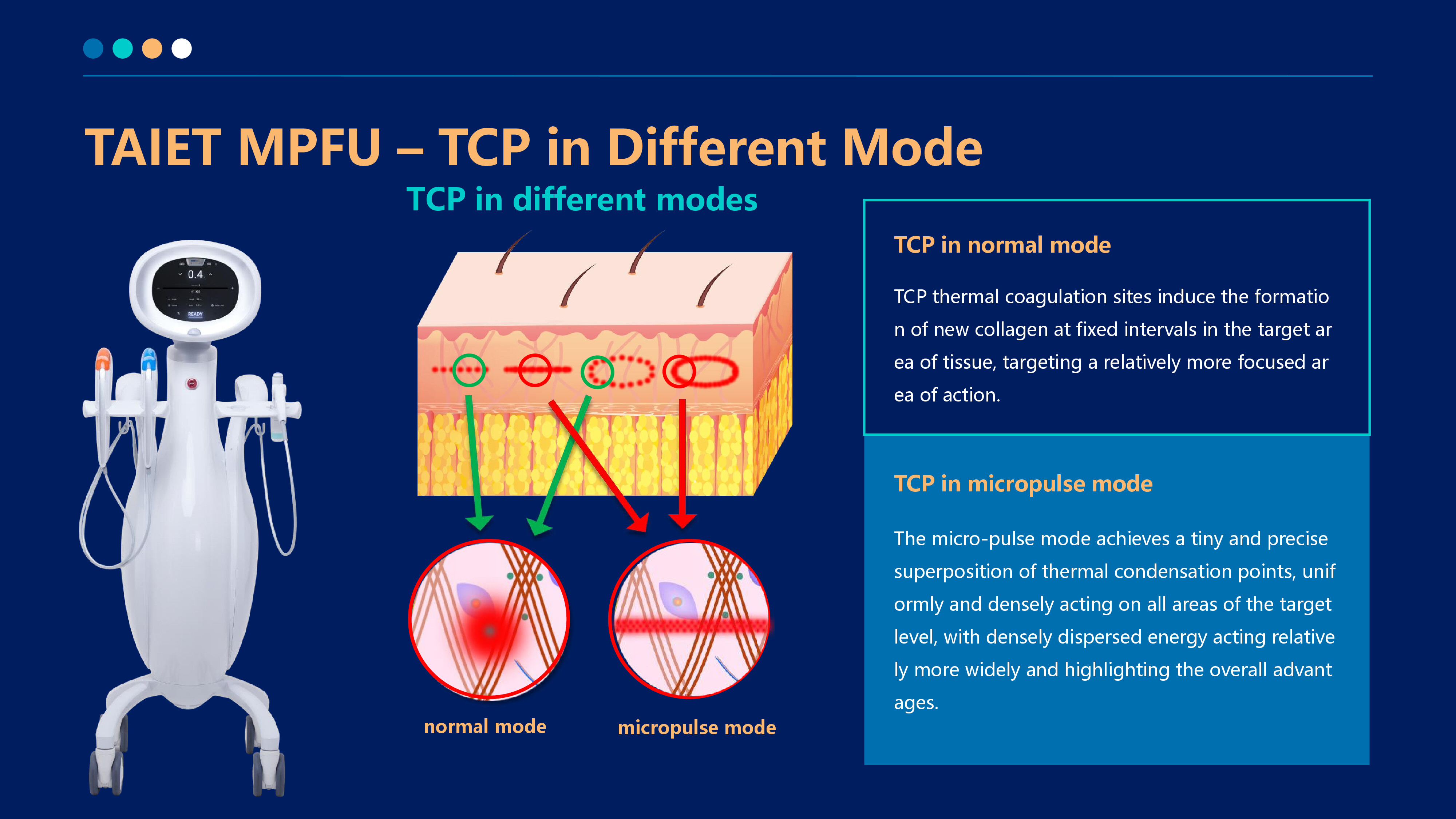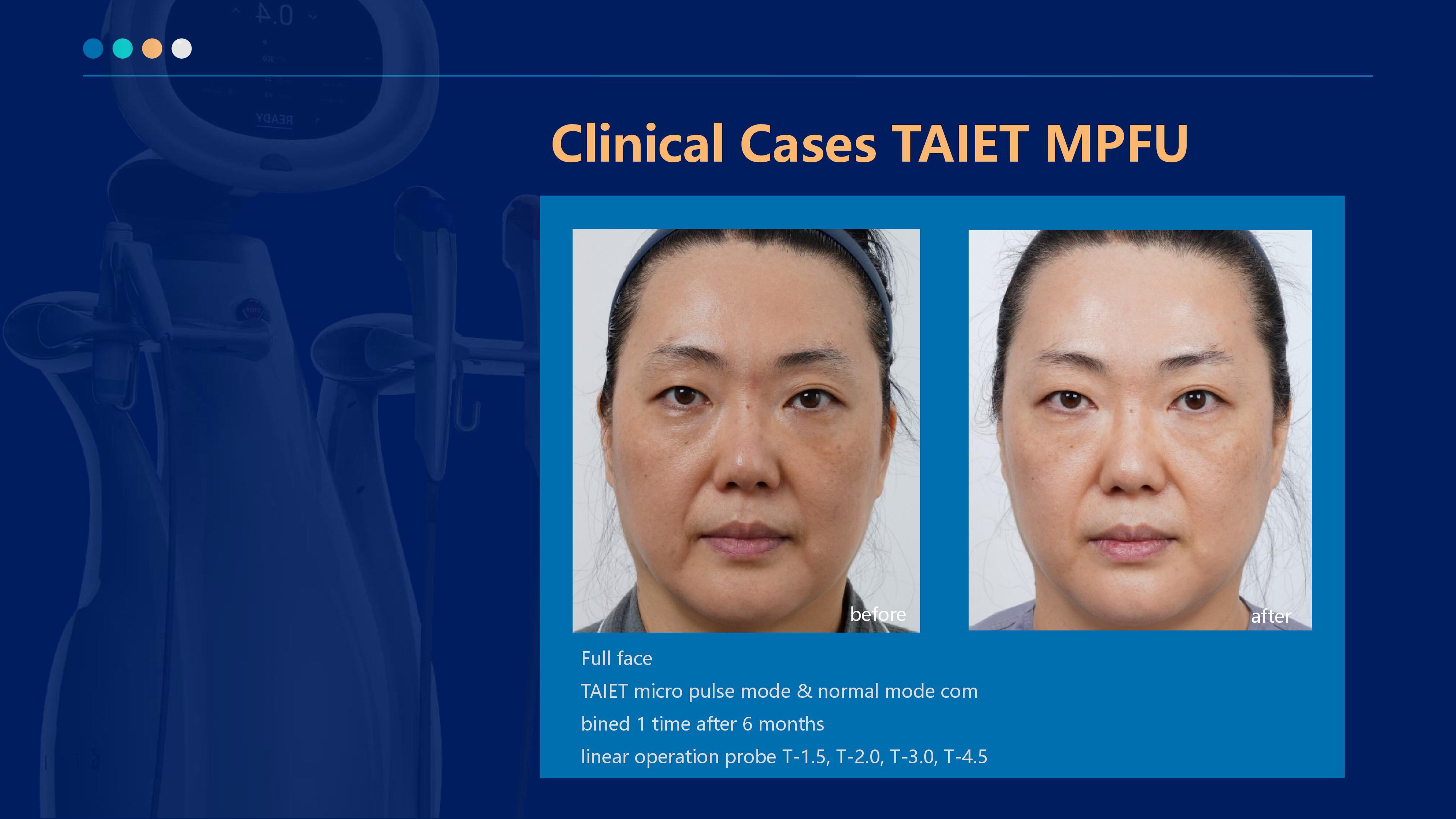 The 6.78MHZ radio frequency penetrates the epidermis directly to the dermis in the form of sinusoidal wave output, causing polar water molecules to generate heat (Joule heating) by high-speed friction, heating to about 45 ° C, causing collagen fibers to